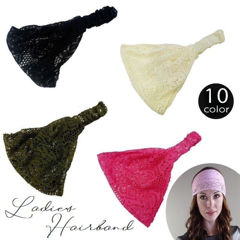 ヘアバンド レディース 女性用 ヘアアクセサリー ターバン 幅広 ワイド 総レース 透け感 無地 おしゃれ かわいい カジュアル