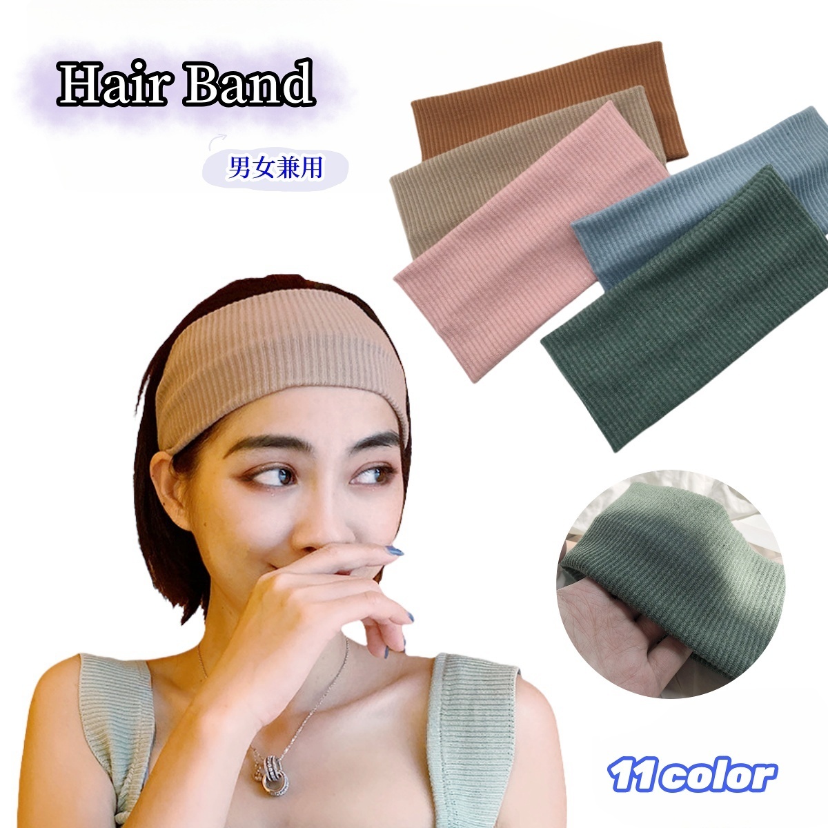 リブニット編みのヘアバンド