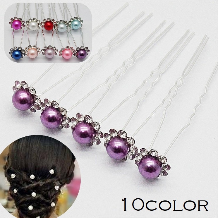 かんざし 簪 Uピン ヘアピン レディース 女性 ヘアアクセサリー 髪飾り 単品 ラインストーン フェイクパール まとめ髪 髪留め U字コーム ヘアス
