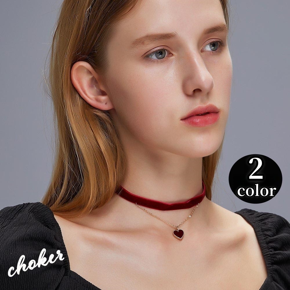 チョーカー ネックレス レディース 女性用 アクセサリー 首飾り ハート リボン ベルベット調 ゴールドカラー チェーン おしゃれ 可愛い きれい 上