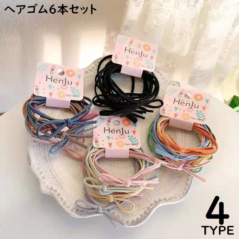 ヘアゴム リングゴム 6本セット キッズ レディース 髪飾り 髪留め ヘアアクセサリー ヘアアレンジ まとめ髪 細め 2連 リボン結び目