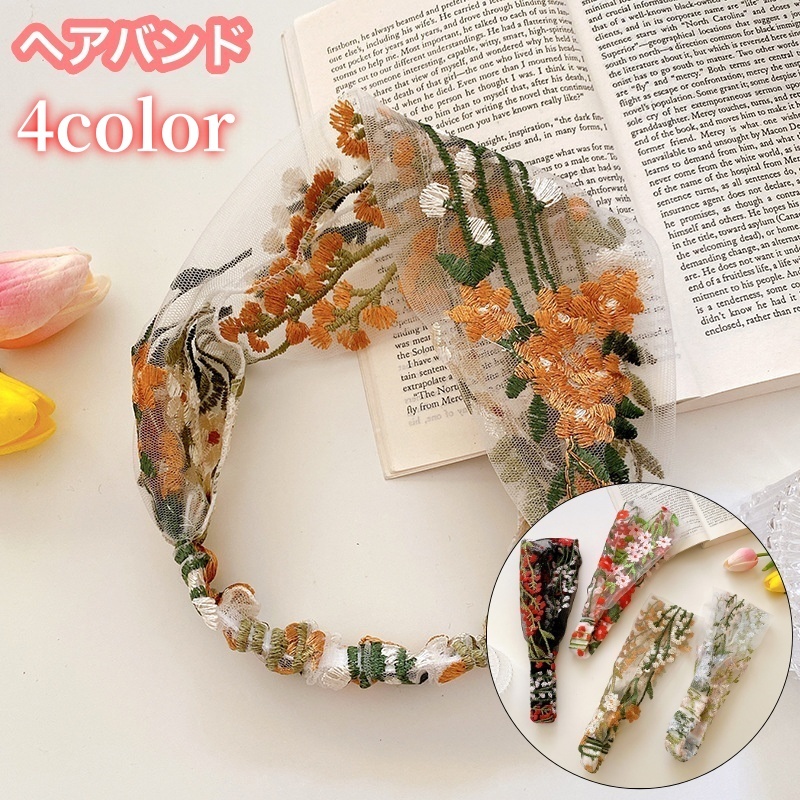 ヘアバンド ヘッドバンド レディース 女性 ヘアアクセサリー 髪飾り レース 刺繍 花柄 透け感 シアー シースルー まとめ髪 ヘアアレンジ お洒落