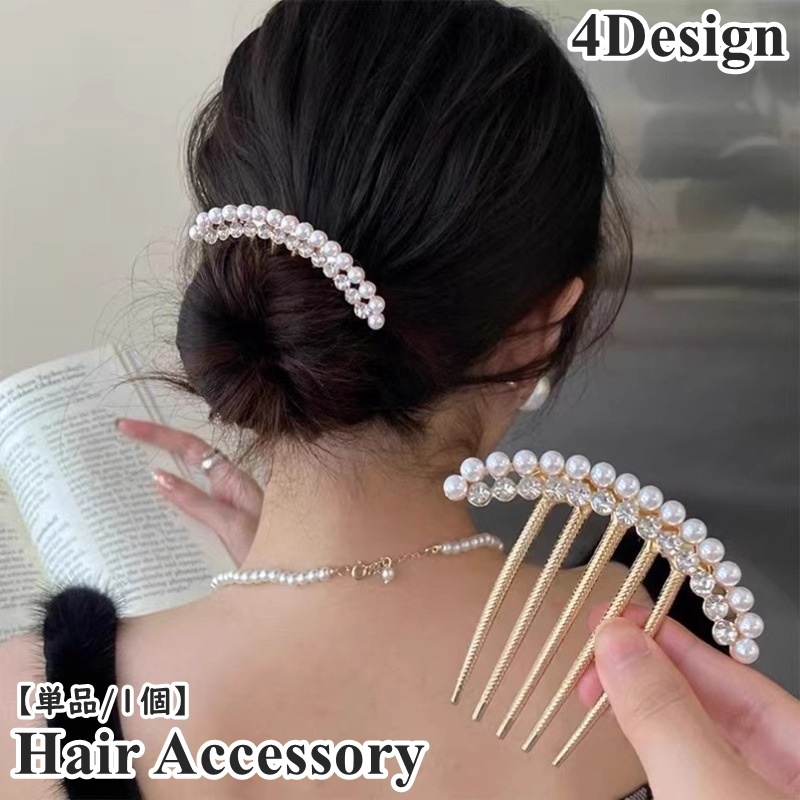 コーム ヘアコーム 単品 1個 簪 かんざし レディース 女性 婦人 ヘアアクセサリー 髪留め 髪飾り ヘアアレンジ パール調 フェイクパール ライン