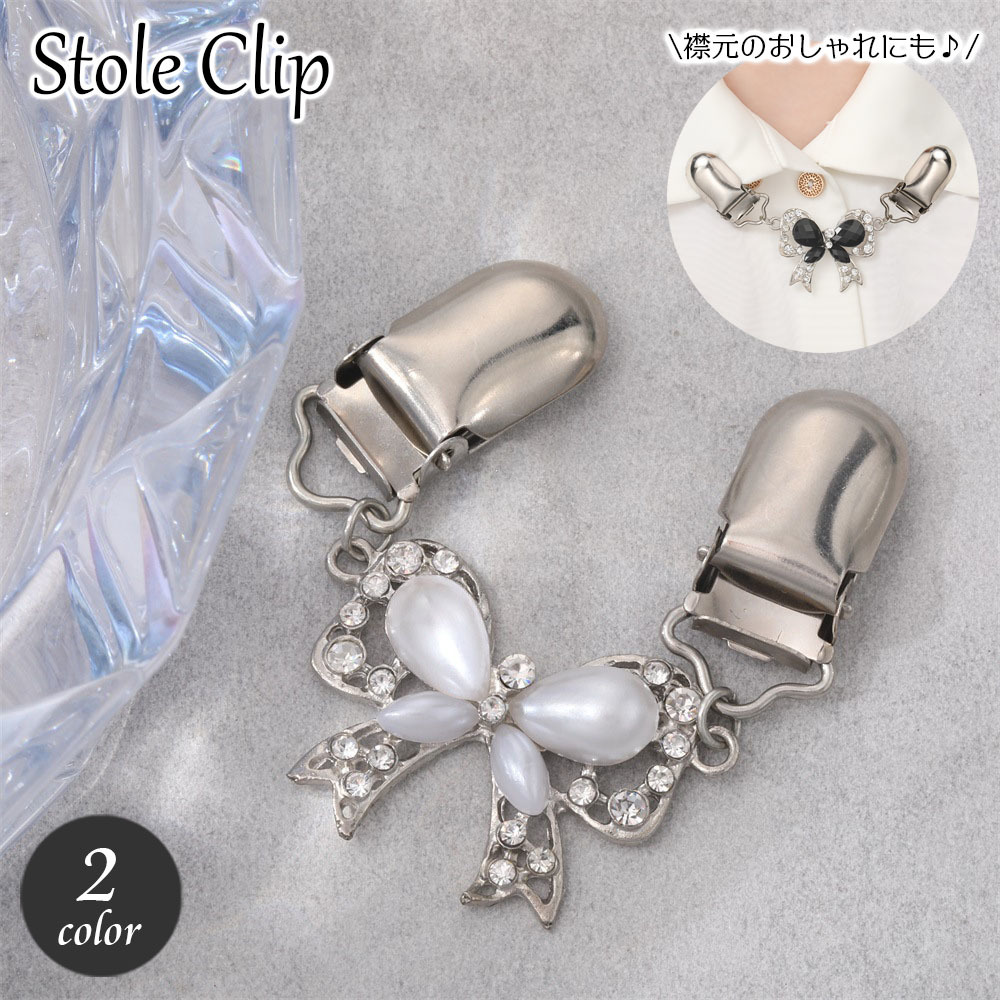 ストールクリップ ショールクリップ ストール留め カーディガンクリップ 襟クリップ レディース アクセサリー リボン ラインストーン キラキラ おしゃ