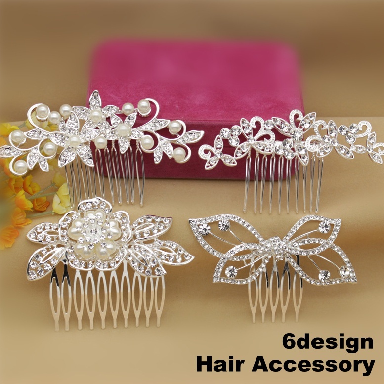 パール調とラインストーンの華やかなヘアコーム。