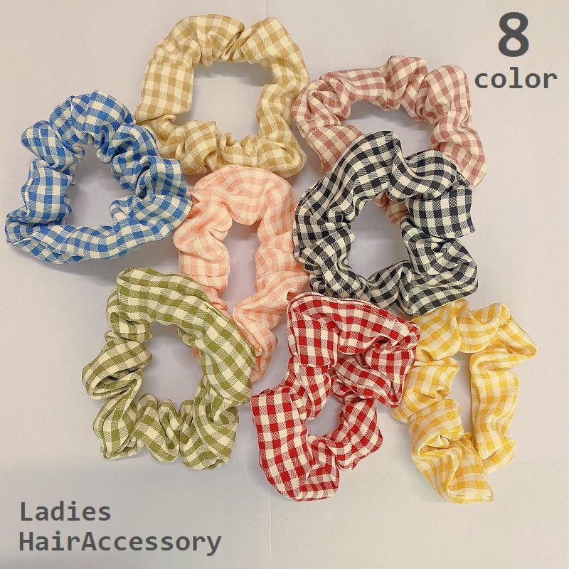 シュシュ ヘアゴム レディース 女性 キッズ 子供 女の子 ヘアアクセサリー 髪留め 髪飾り まとめ髪 ヘアアレンジ 髪ゴム チェック柄 可愛い おし