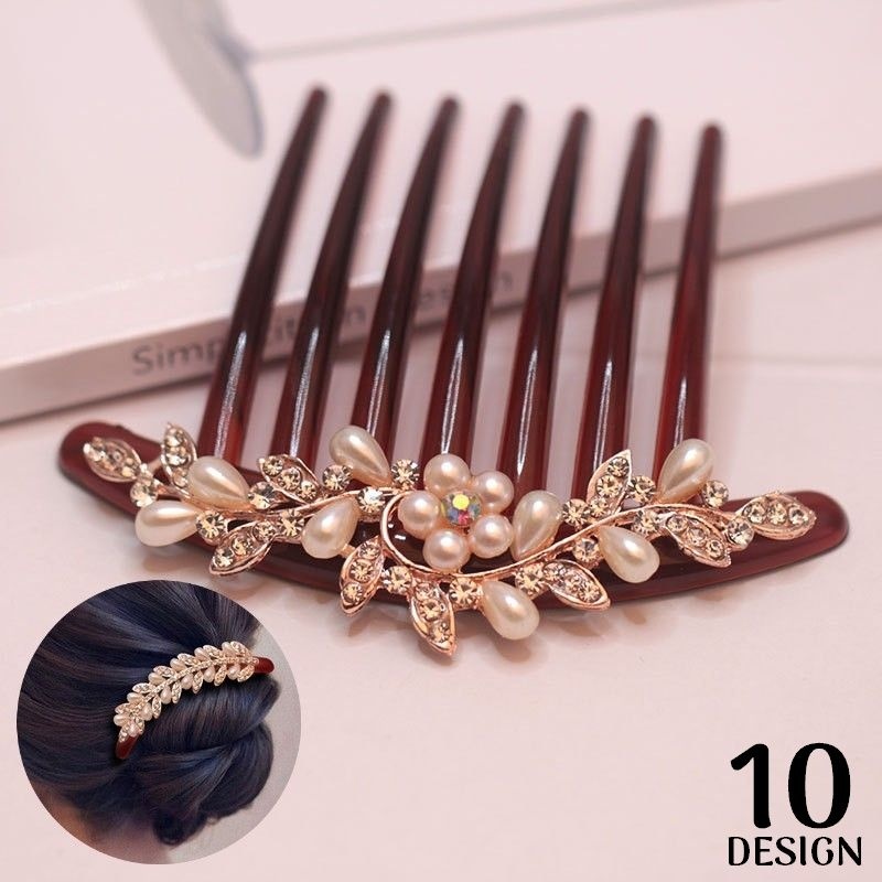 フェイクパール&ラインストーンで飾られたレディース用ヘアコームです。