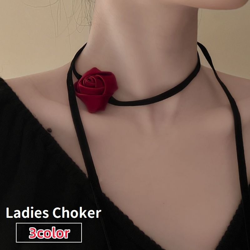 チョーカー 首飾り レディース 女性用 アクセサリー 薔薇 バラ 可愛い おしゃれ ゴシック ゴスロリ コスプレ プレゼント 贈り物 ギフト