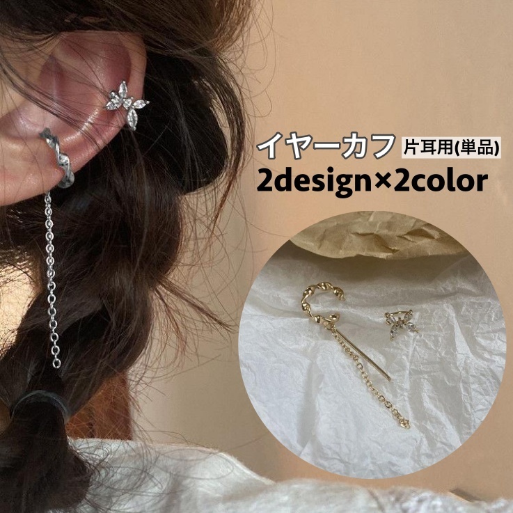 イヤーカフ 片耳用 単品 イヤカフ ノンホール イヤークリップ レディース 女性 アクセサリー チェーン リング 垂れる ロング 蝶 バタフライ 耳飾