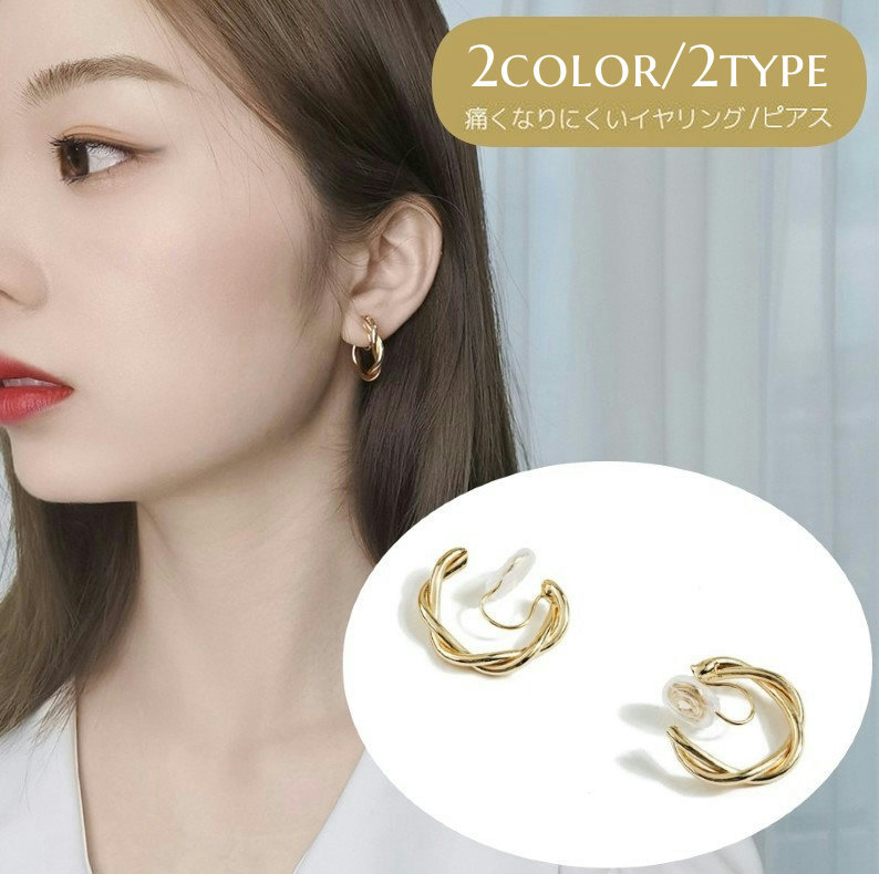 イヤリング レディース 女性 アクセサリー クロス ひねり フープ ツイスト ゴールドカラー プレゼント 贈り物 ギフト 記念日 結婚式 デート お出