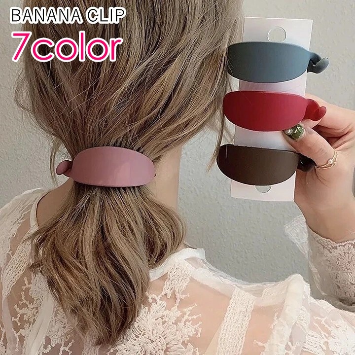 バナナクリップ ヘアクリップ 髪留め レディース 女性 ヘアアクセサリー 楕円形 オーバル型 幅広 短め 無地 ピンク ブラック グレー シンプル か