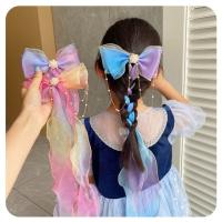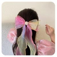ヘアクリップ 子供 キッズ 女の子 ヘアアクセサリー 髪飾り リボン チェーン パール調 ロング カラフル キラキラ かわいい シフォン 仮装 ドレス
