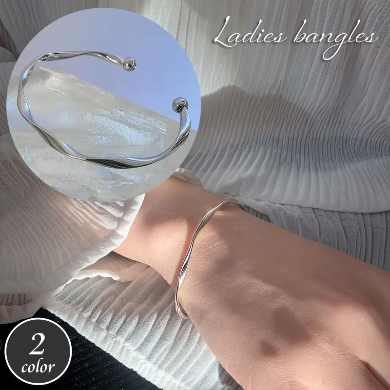 バングル ブレスレット レディース アクセサリー 女性用 メタル シルバーカラー ゴールドカラー C型 ツイスト ひねり シンプル カジュアル おしゃ