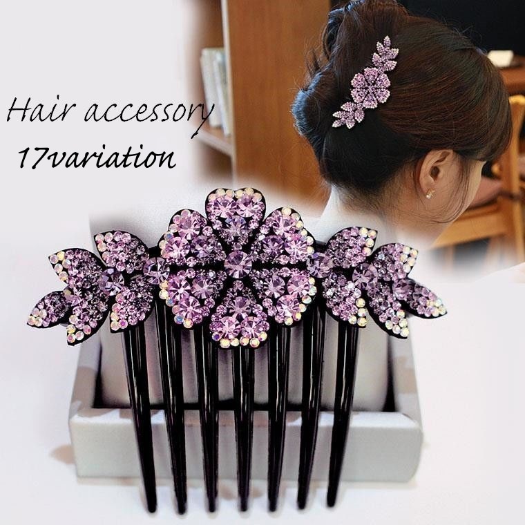 ヘアコーム 髪留め ヘアアクセサリー レディース 女性 髪飾り 花 フラワー リーフ ラインストーン キラキラ かわいい おしゃれ 華やか 上品 エレ