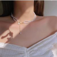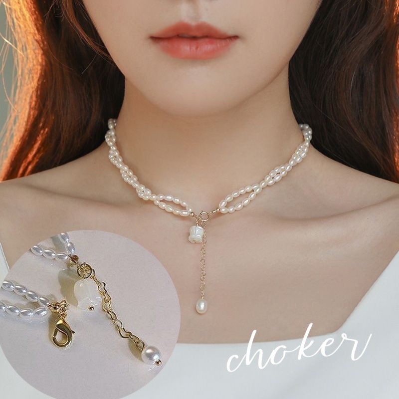 フェイクパールの2連デザインが上品で女性らしさを演出してくれるチョーカーネックレス。