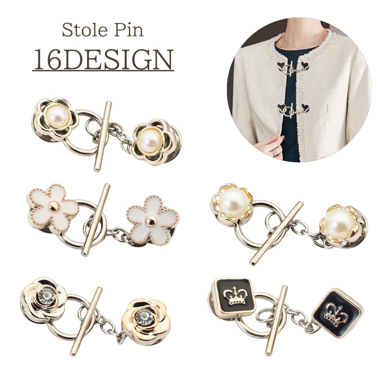 ストールピン レディース アクセサリー フォーマル ブローチ チェーン カーディガンクリップ ピン フェイクパール パール調 ビジュー フラワー 王冠