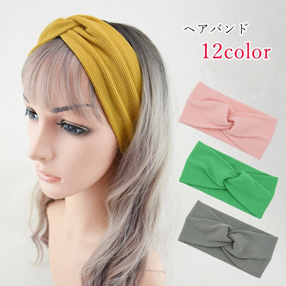 ヘアバンド ヘッドバンド レディース 女性 ヘアアクセサリー ファッション雑貨 幅広 ツイスト ターバン風 リブ生地 無地 ブラック ホワイト ピンク
