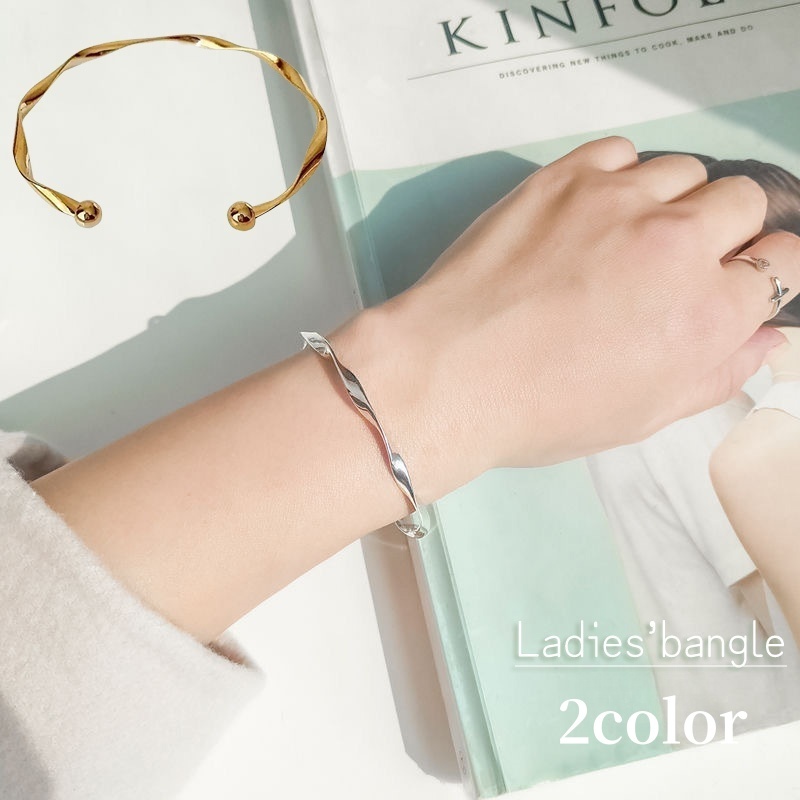 バングル ブレスレット レディース 女性用 アクセサリー オープン ねじれ シンプル おしゃれ