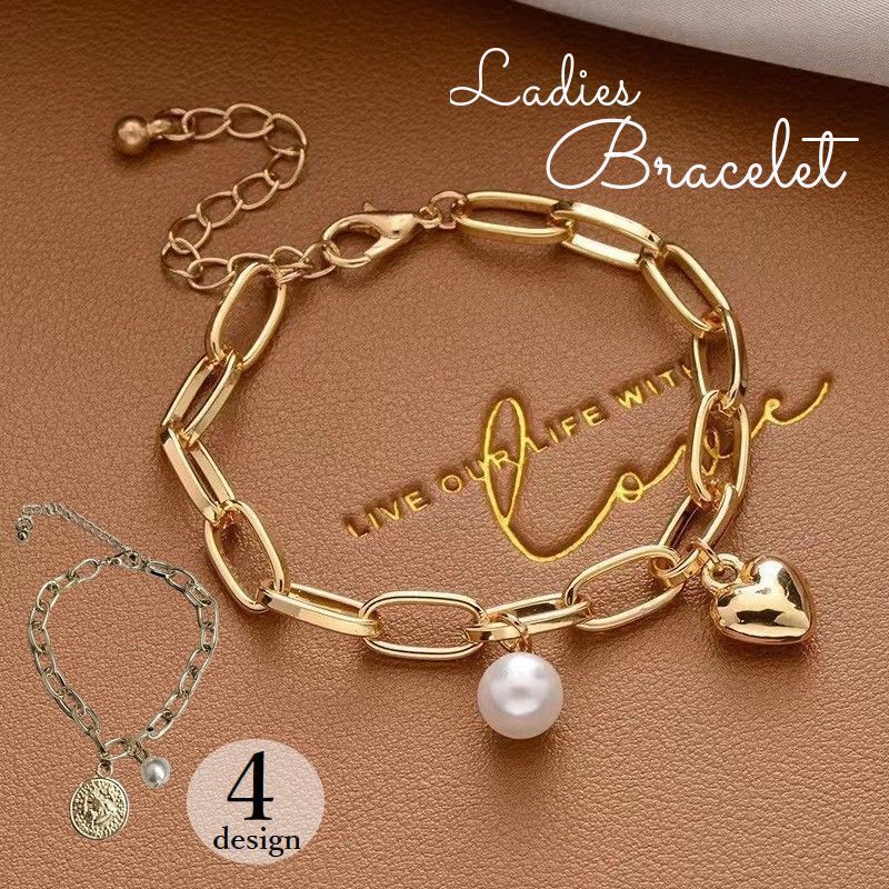ブレスレット レディース 女性用 アクセサリー チェーン フェイクパール ハート 十字架 クロス コイン風 アジャスター付き おしゃれ かわいい プレ