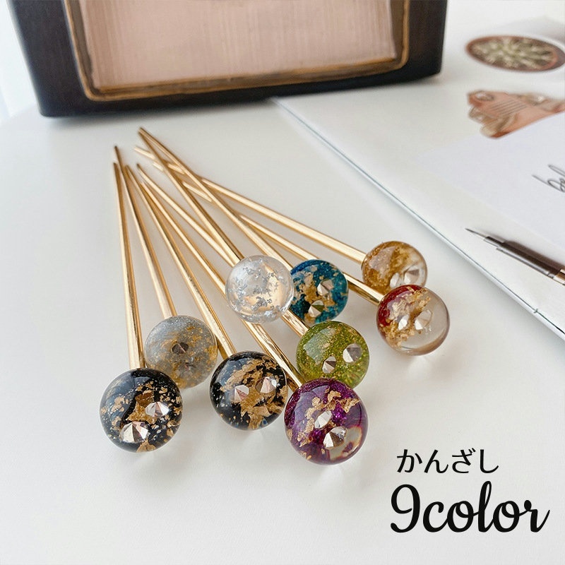 玉かんざし スティック ヘアアクセサリー レディース 女性 髪留め 髪飾り まとめ髪 ラインストーン フレーク入り 金箔風 キラキラ ラメ 華やか 透