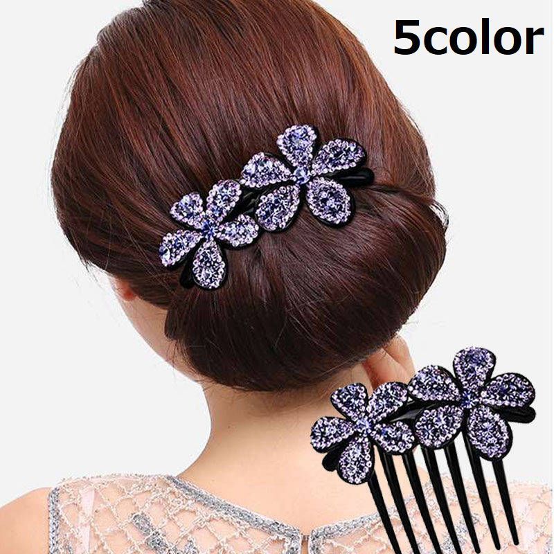 ヘアコーム 髪留め ヘアアクセサリー レディース 女性 婦人 髪飾り 花 フラワー ラインストーン ヘアアレンジ きらきら かわいい おしゃれ 華やか