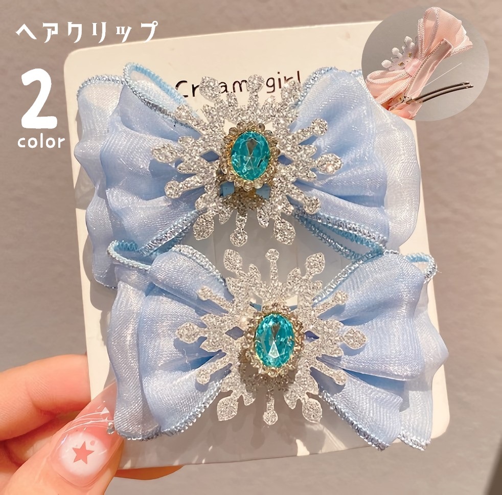 ヘアクリップ 2個セット キッズ 子供 女の子 ヘアアクセサリー 髪留め 髪飾り まとめ髪 リボン 雪 結晶 ファッション小物 ヘアアレンジ かわいい