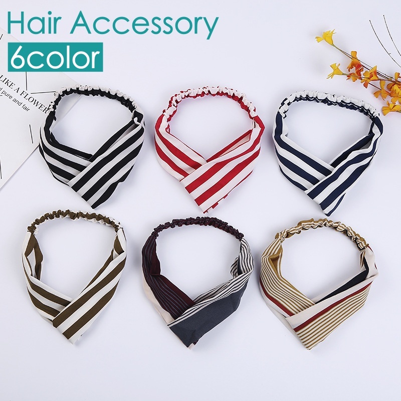 ヘアバンド ヘアターバン レディース 女性 ヘアアクセサリー 髪飾り クロス 交差 ストライプ柄 幅広 ヘアアレンジ おしゃれ 可愛い ファッション小