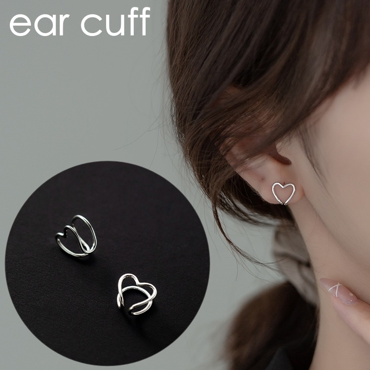 イヤーカフ イヤークリップ イヤリング 両耳用 レディース 女性 アクセサリー 小ぶり 小さめ ハート シルバーカラー シンプル おしゃれ 大人可愛い