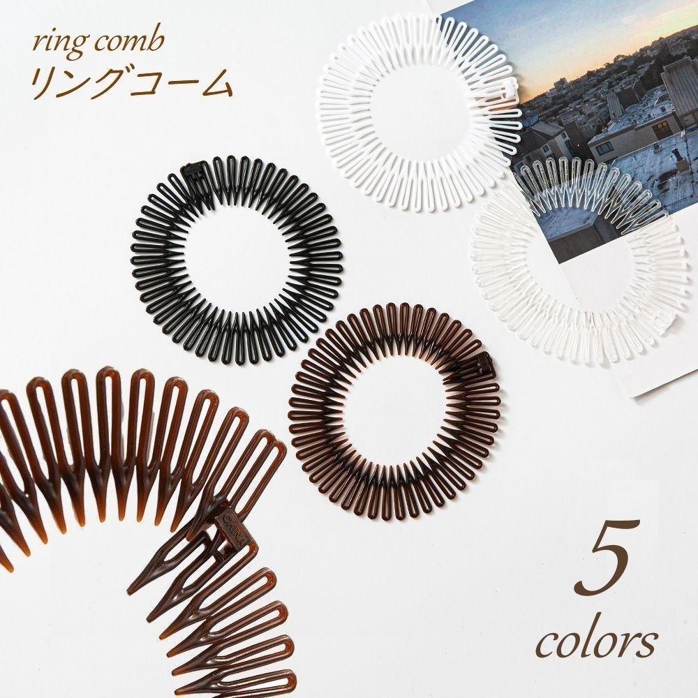 リングコーム ヘアコーム ヘアアクセサリー ストレッチコーム クシ型ヘアバンド まとめ髪 レディース ヘアアレンジ 洗顔 ホワイト ブラック ブラウン