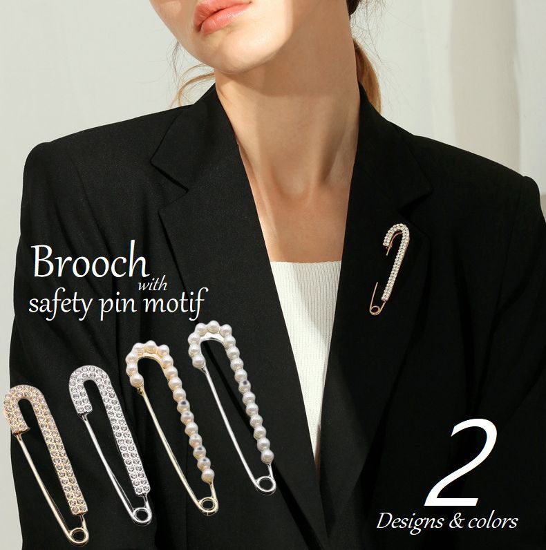 ブローチ ストールピン ショールピン ラインストーン パール調 安全ピンモチーフ ピンブローチ レディース アクセサリー ゴールドカラー シルバーカラ