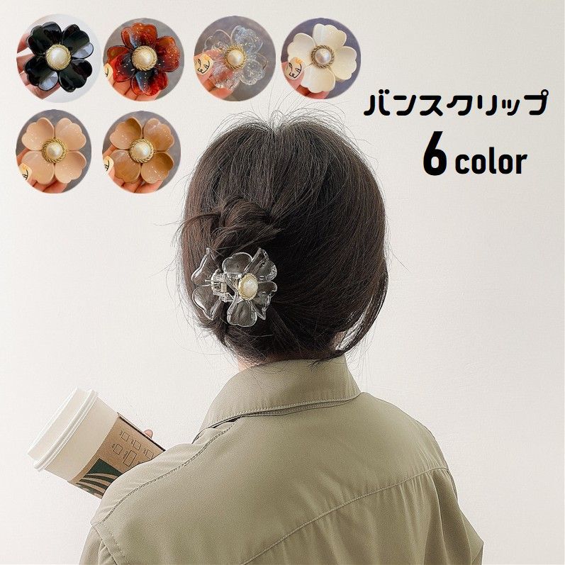 ヘアクリップ バンスクリップ レディース ヘアアクセサリー フラワー フェイクパール 髪留め 髪飾り まとめ髪 ヘアアレンジ 花型 挟む 簡単 女性