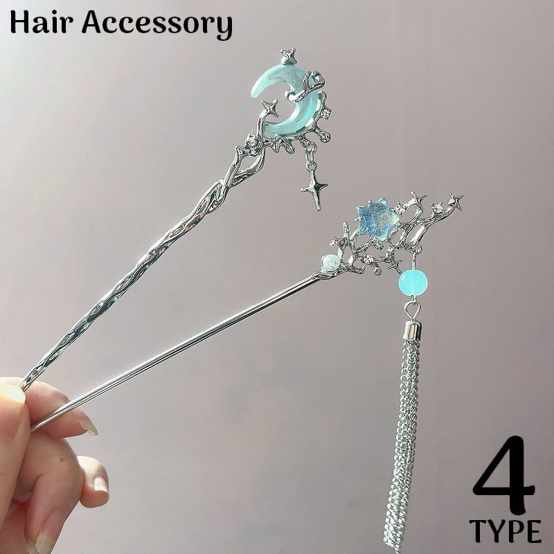 かんざし 簪 一本挿し 女性 ヘアアクセサリー 髪飾り 髪留め 和装 着物 浴衣 月 星 スター ムーン ラインストーン ビジュー