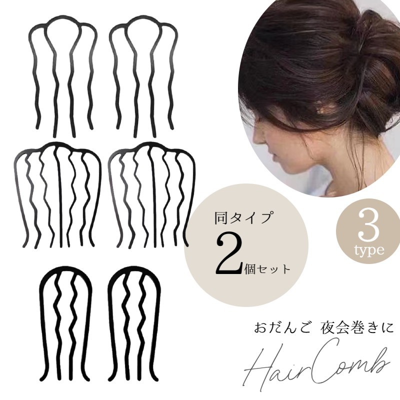 コーム 夜会巻きコーム ヘアコーム Eスティック 薄型 金属 お団子 かんざし 簪 同タイプ2個セット U字 コーム レディース ヘアアクセサリー ヘ