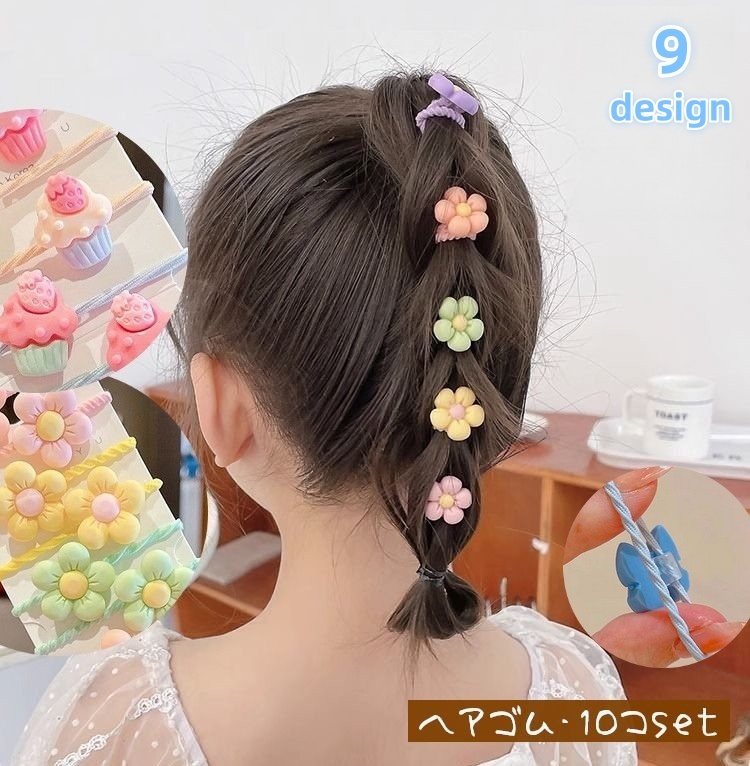 ヘアゴム 10個セット キッズ ベビー ヘアアクセサリー リングゴム チャーム付 髪ゴム ミニサイズ まとめ髪 ヘアアレンジ リボン お花 フルーツ