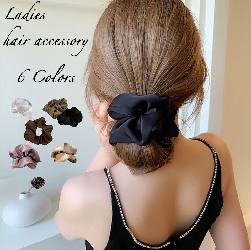 シュシュ ヘアゴム ヘアアクセサリー レディース 髪飾り まとめ髪 髪留め ふんわり 大きめ サテン調 ボリューム 無地 おしゃれ かわいい 上品