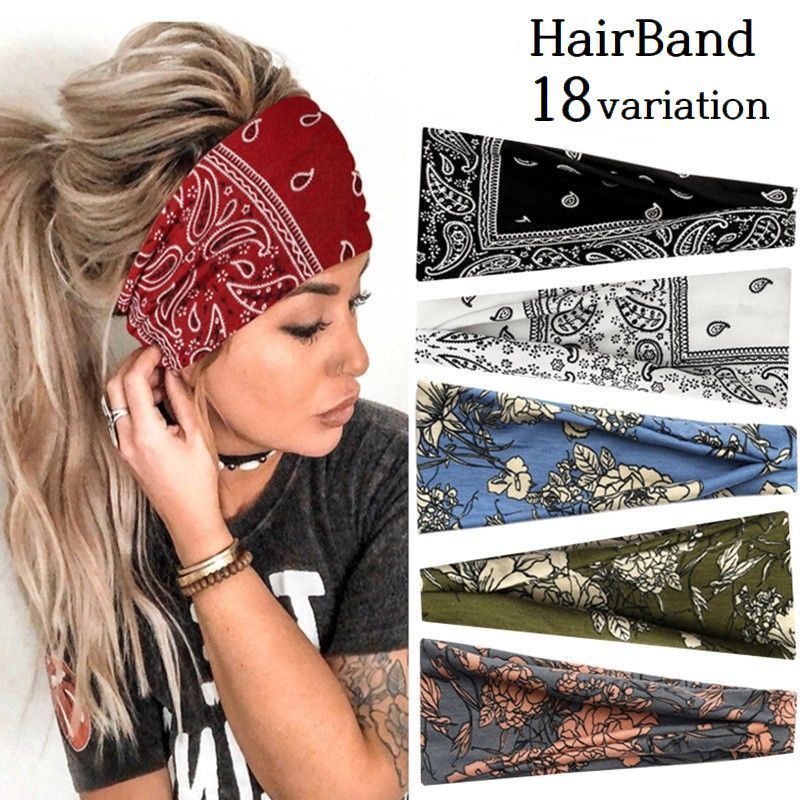 ヘアバンド ヘッドバンド バンダナ風 レディース 女性用 幅広 ヘアアレンジ ヘアーバンド 髪飾り 髪留め 汗止め スポーツ ヨガ 運動 ウォーキング