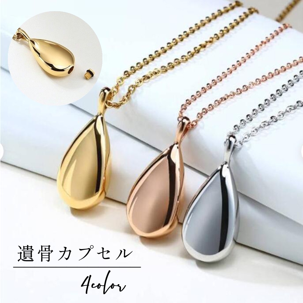 遺骨カプセルのペンダントトップ付きしずく型ネックレスです。