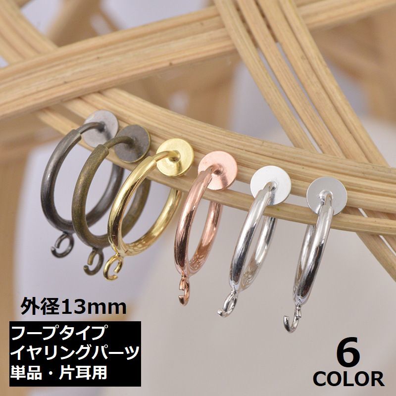 イヤリングパーツ フープ 片耳用 13mm 平皿 カン付き 輪っか アクセサリーパーツ ノンホールピアス ハンドメイド DIY