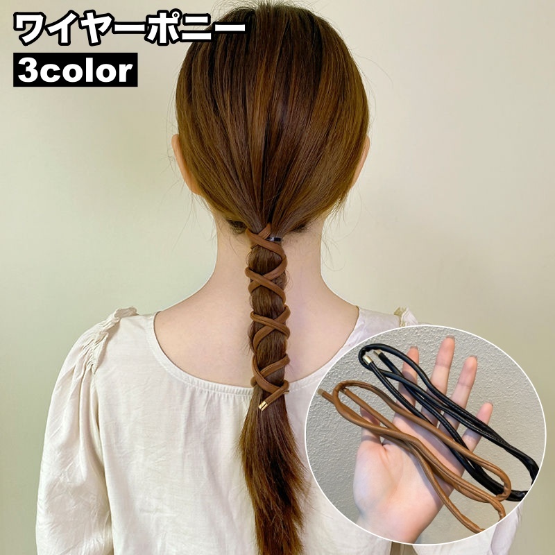 ワイヤーポニー ヘアワイヤー レディース 女性 ヘアアクセサリー 巻き付け フェイクレザー アレンジ おしゃれ シンプル