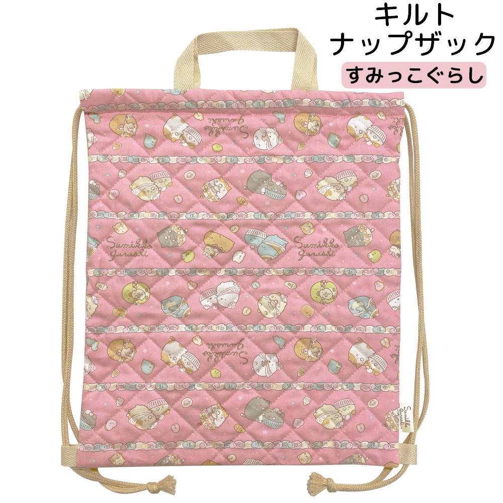 すみっコぐらしのキャラクターが可愛いキルトナップザック。