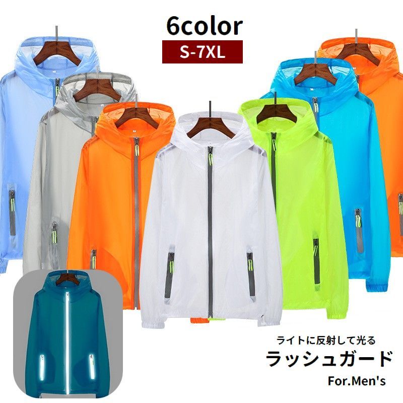 ラッシュガード ラッシュパーカー ジップアップ 長袖 メンズ アウター フード付き 薄手 反射 光る 上着 羽織り 大きいサイズ 日除け 紫外線対策