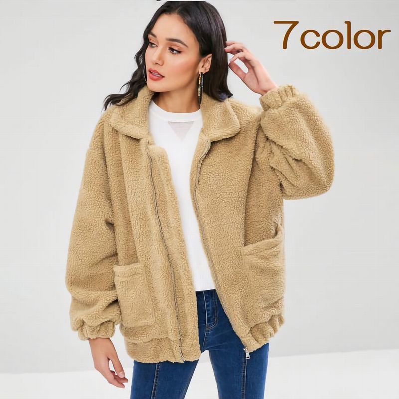 フリースジャンパー フリースジャケット レディース 女性 アウター 上着 長袖 ボア ラウンドカラー 襟付き ポケット ファスナー カジュアル 無地