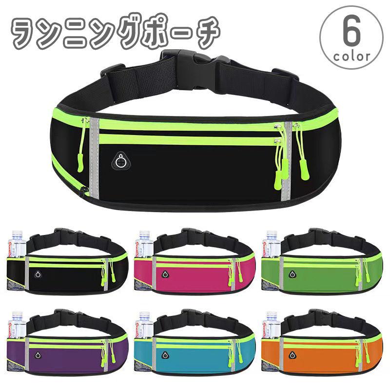 ランニングポーチ ウエストポーチ ヒップバッグ ボディバッグ 鞄 カバン ボトルホルダー イヤホン穴 ファスナー 小物入れ ランニング ジョギング ス