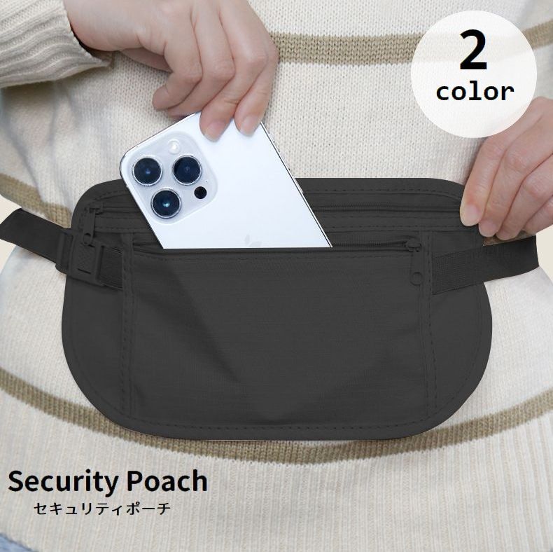 セキュリティポーチ ウエストポーチ シークレットポーチ 薄型 レディース メンズ 男女兼用 ウエストバッグ ファスナー 盗難防止 紛失防止 防犯 海外