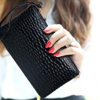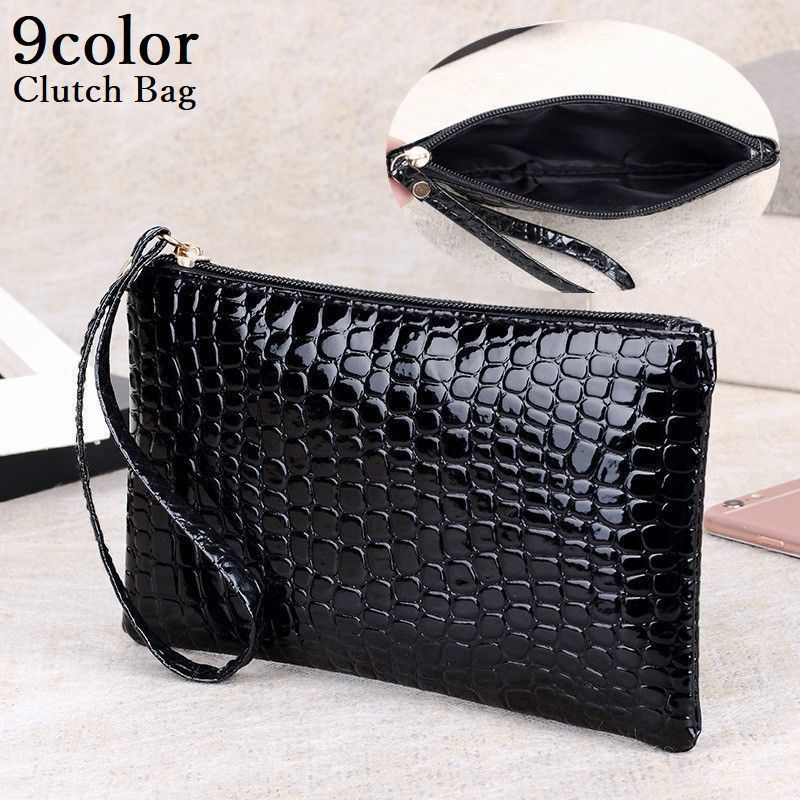 クラッチバッグ セカンドバッグ スマホポーチ レディース レザー調 ワニ革風 クロコ型押し 長方形 小さめ 薄型軽量 ストラップ
