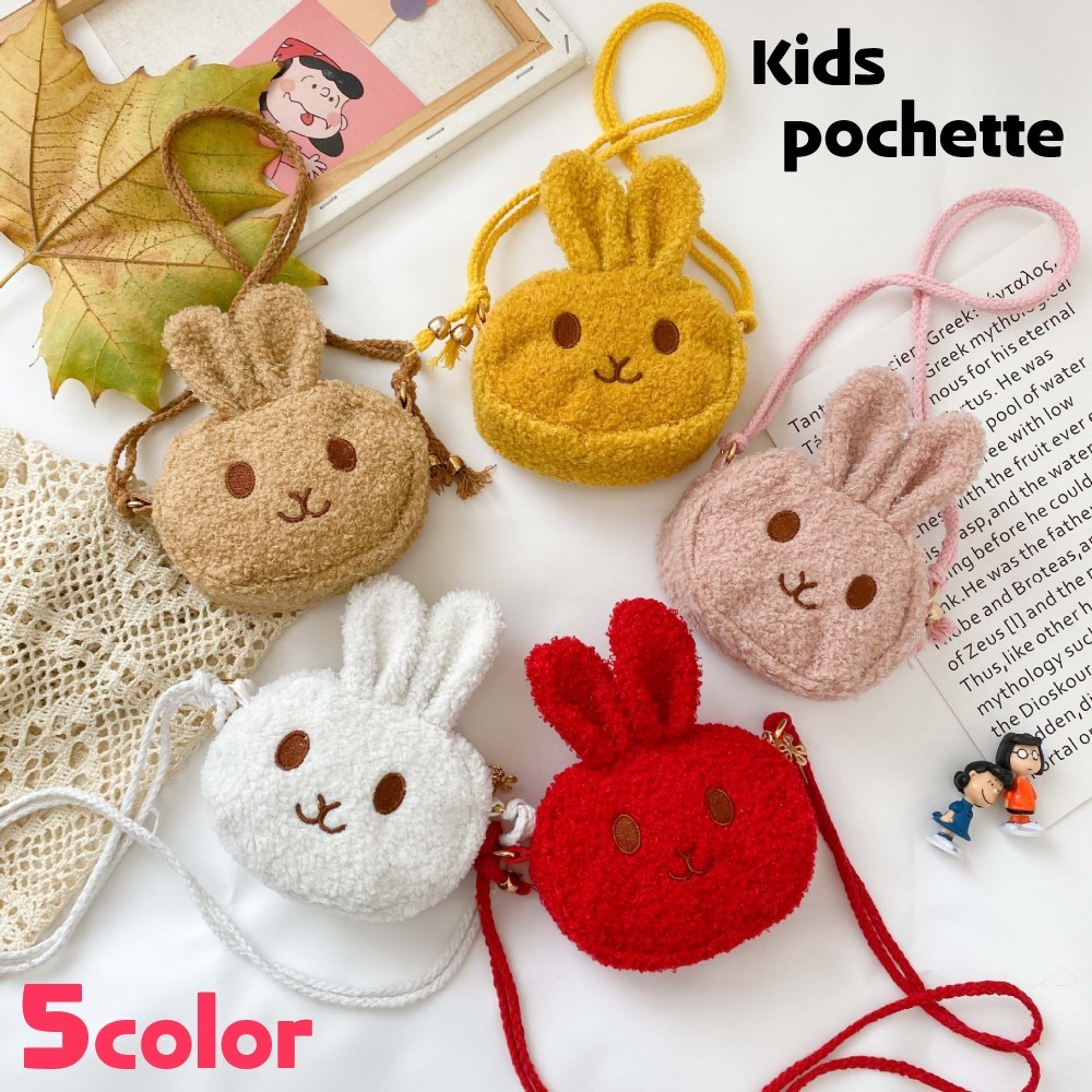ウサギの形が可愛い、ふわふわ生地のキッズ用ポシェット。