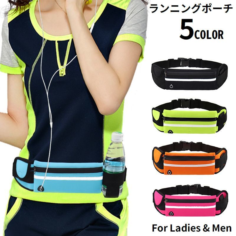 ランニングポーチ ウエストポーチ バッグ レディース メンズ 揺れない 防水 軽量 大容量 ペットボトル 反射材 イヤホンホール スマホ収納 ジョギン