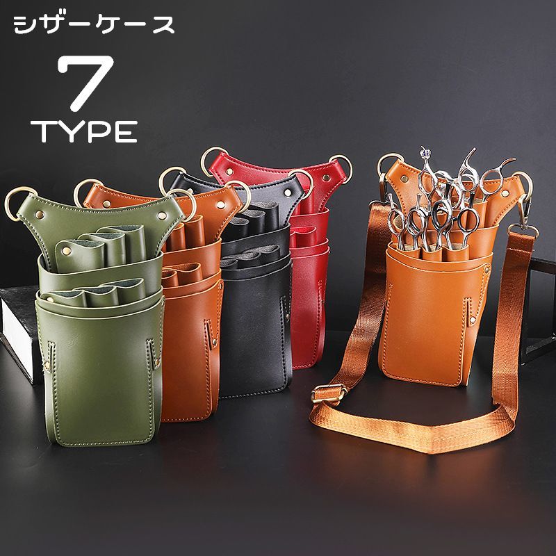 シザーケース シザーバッグ ベルト付 PUレザー 大容量 多機能 軽量 ハサミ6丁挿し 美容師 トリマー 理容師 花屋 プロ用