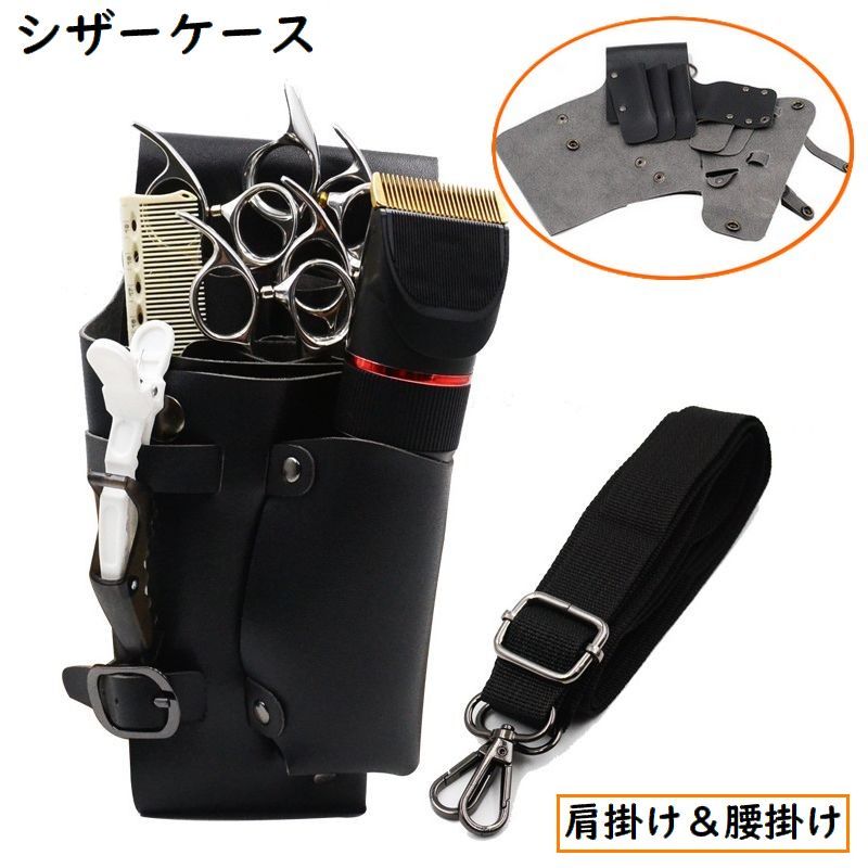 シザーケース シザーバッグ ベルト付き PUレザー 大容量 多機能 軽量 ハサミ5丁挿し 美容師 トリマー 理容師 花屋 プロ用