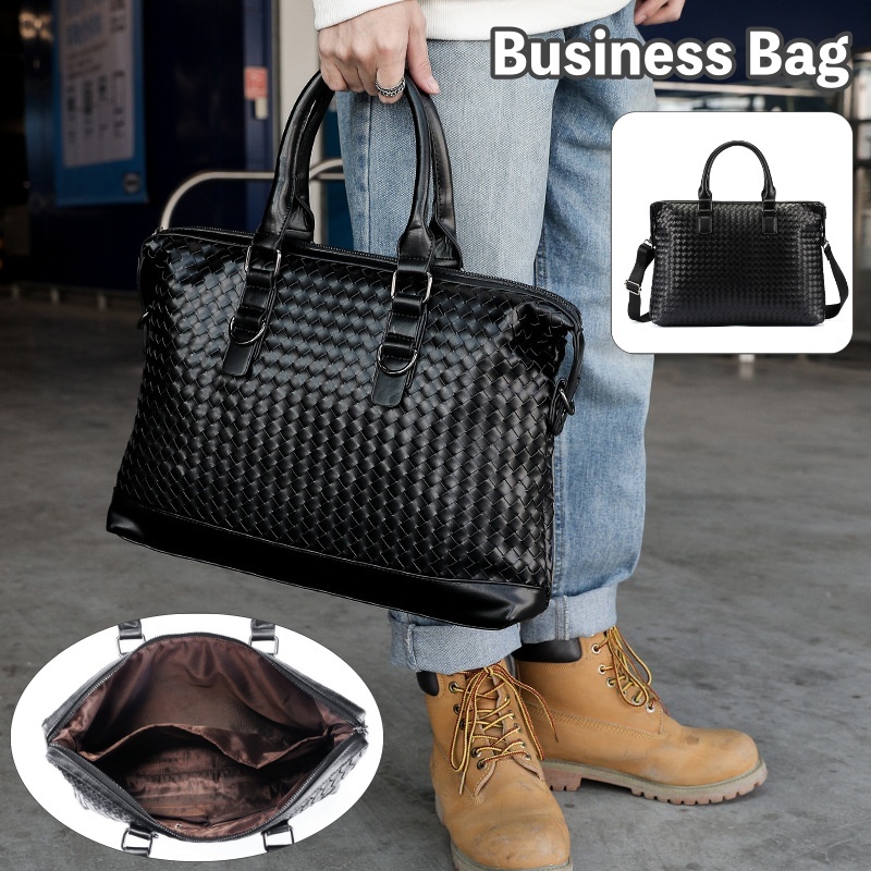 ブリーフケース ビジネスバッグ ショルダーバッグ 2way メンズ 男性 カバン かばん 編み込み 仕切り ポケット 収納力 お洒落 かっこいい シン